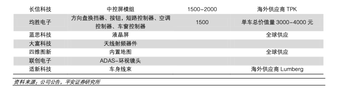 除了三電系統(tǒng)外,汽車電子也是電動(dòng)車相對(duì)于燃油車的價(jià)值增量點(diǎn),能進(jìn)入特斯拉供應(yīng)鏈的國(guó)產(chǎn)供應(yīng)商具有較高的壁壘,并且可替代性較弱,其業(yè)績(jī)具有持續(xù)增長(zhǎng)的能力。