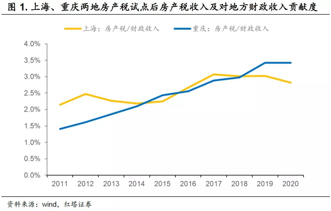 當(dāng)然,有人會(huì)有疑問,說你看2011年上海、重慶都有過房地產(chǎn)稅試點(diǎn),房價(jià)還是在漲,地方增長的模式也沒有明顯改變,2020年上海的房產(chǎn)稅198億,重慶的房產(chǎn)稅是71.7億,占財(cái)政收入和土地出讓的比重均可以說是微乎其微,所以,這次房產(chǎn)稅就真有換“錨”的效果嗎?