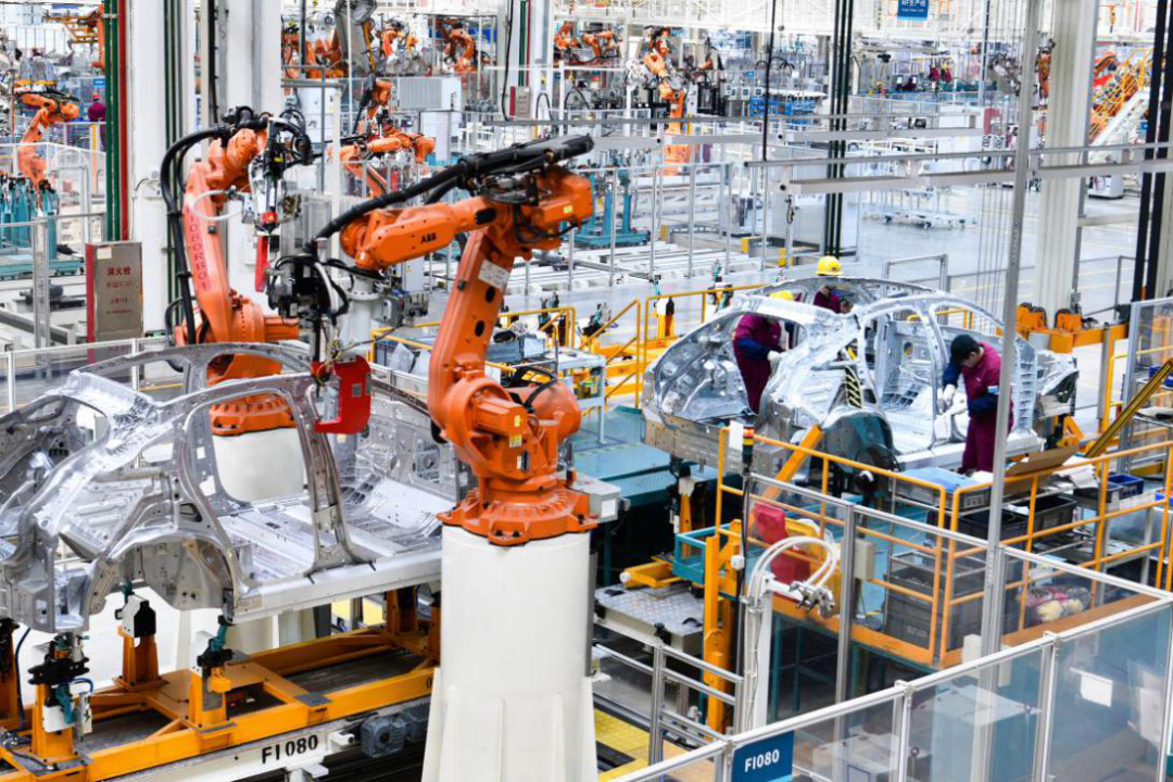 走進(jìn)蔚來汽車合肥工廠,300多個機(jī)器人正在完成沖壓、焊接、涂裝等作業(yè)。整個車間,自動化率達(dá)到97.5%,平均每小時可以下線20臺整車。