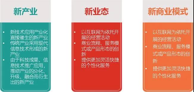 “三新”是新經(jīng)濟(jì)的核心特征。中國新經(jīng)濟(jì)以新產(chǎn)業(yè)、新業(yè)態(tài)、新商業(yè)模式為核心內(nèi)容的經(jīng)濟(jì)活動(dòng)的集合代表,形成了經(jīng)濟(jì)全面轉(zhuǎn)型升級(jí)的新動(dòng)能。其中,新產(chǎn)業(yè)是指應(yīng)用新科技成果、新興技術(shù)而形成一定規(guī)模的新型經(jīng)濟(jì)活動(dòng);新業(yè)態(tài)是指順應(yīng)多元化、多樣化、個(gè)性化的產(chǎn)品或服務(wù)需求,依托技術(shù)創(chuàng)新和應(yīng)用,從現(xiàn)有產(chǎn)業(yè)和領(lǐng)域中衍生疊加出的新環(huán)節(jié)、新鏈條、新活動(dòng)形態(tài);新商業(yè)模式是一種為實(shí)現(xiàn)用戶價(jià)值和企業(yè)持續(xù)盈利目標(biāo),對(duì)企業(yè)經(jīng)營的各種內(nèi)外要素進(jìn)行整合和重組,形成高效并具有獨(dú)特競(jìng)爭力的商業(yè)運(yùn)行模式。