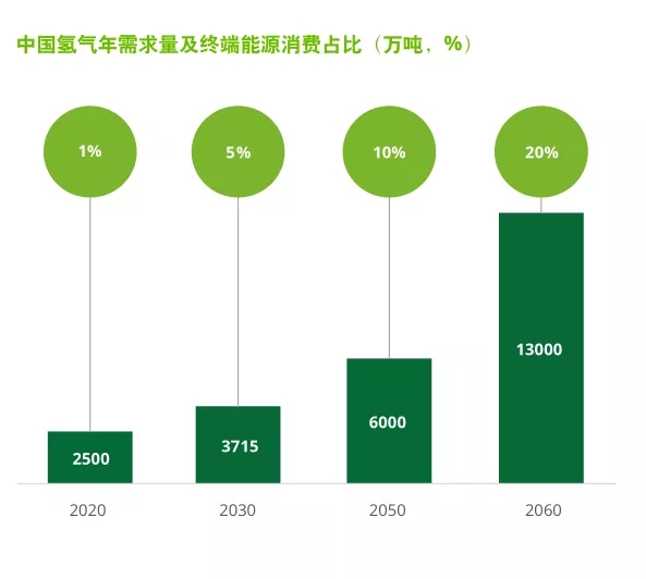 2021年4月21日,中國氫能聯(lián)盟發(fā)布《中國氫能源及燃料電池產(chǎn)業(yè)白皮書2020》,指出在2030年碳達(dá)峰情景下,我國氫氣的年需求量將達(dá)到3715萬噸,在終端能源消費(fèi)中占比約為5%;在2060年碳中和情景下,我國氫氣的年需求量將增至1.3億噸左右,在終端能源消費(fèi)中占比約為20%。由此可見,“雙碳”目標(biāo)下及技術(shù)進(jìn)步將推動(dòng)中國氫能源行業(yè)發(fā)展穩(wěn)步前行。