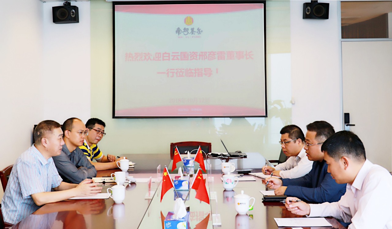 10月12日上午,廣州市白云國有資產(chǎn)經(jīng)營有限公司(簡稱“白云國資”)黨委書記、董事長邢彥雷一行專程到訪廣州南粵基金集團有限公司(簡稱“南粵基金”)考察交流。