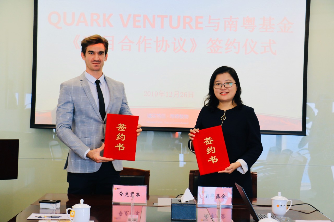 12月26日,廣州南粵基金集團(tuán)有限公司(簡(jiǎn)稱(chēng)“南粵基金”)在廣州國(guó)際金融中心分別與東興資本投資管理有限公司(簡(jiǎn)稱(chēng)“東興資本”)、QUARK VENTURE LP公司(簡(jiǎn)稱(chēng)“夸克資本”)正式簽署戰(zhàn)略合作協(xié)議,就設(shè)立全球創(chuàng)新醫(yī)療產(chǎn)業(yè)基金、粵港澳醫(yī)療科技商業(yè)化(成果轉(zhuǎn)化)中心等合作行動(dòng)達(dá)成重要共識(shí)。南粵基金副總裁譙菲菲、東興資本副總經(jīng)理郭蒙、夸克資本代表Joao Hein、保創(chuàng)投資發(fā)展有限公司總經(jīng)理助理穆雨時(shí)共同出席簽約儀式。