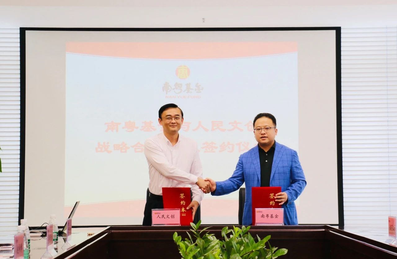 10月30日,廣州南粵基金集團有限公司(簡稱“南粵基金”)與人民日報旗下文創(chuàng)品牌“人民文創(chuàng)”在廣州正式簽署合作協(xié)議。南粵基金董事長林濤、人民文創(chuàng)(北京)文化發(fā)展有限公司總經(jīng)理仇炳剛共同出席簽約儀式。