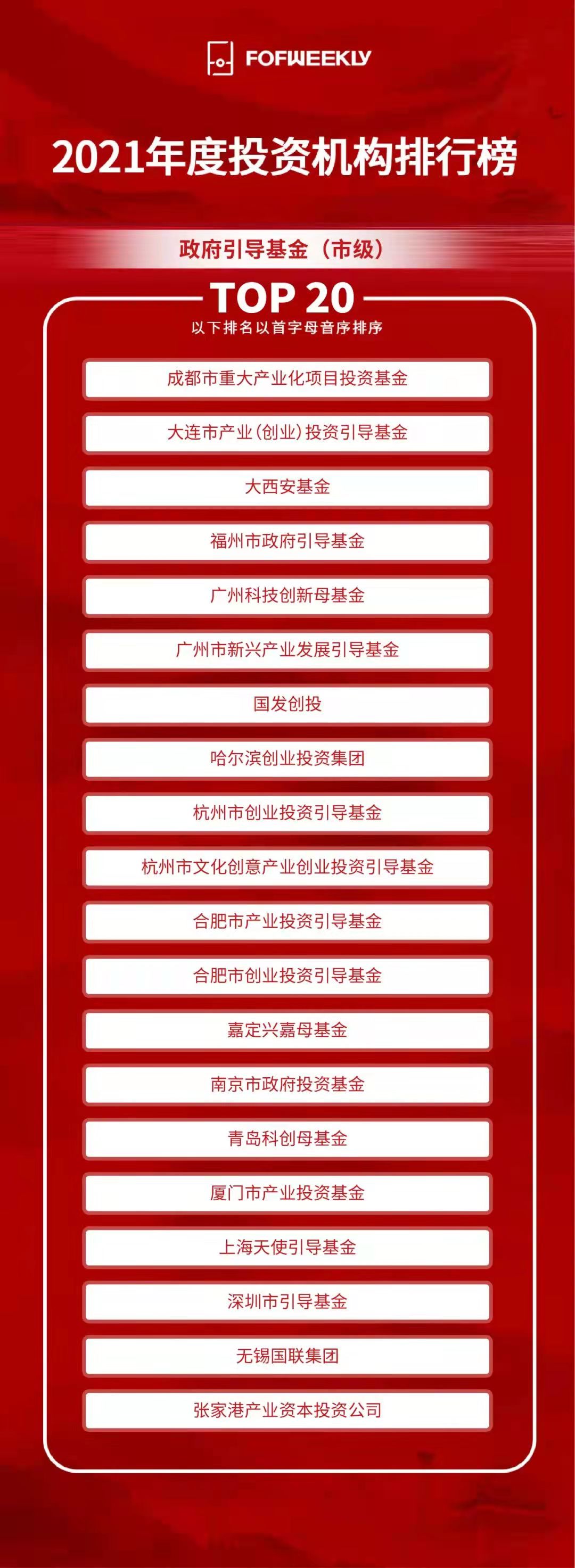 3月18日,行業(yè)權(quán)威媒體《母基金周刊》(FOFWEEKLY)公布“2021年度投資機(jī)構(gòu)排行榜”,南粵基金管理的大連市產(chǎn)業(yè)(創(chuàng)業(yè))投資引導(dǎo)基金(簡(jiǎn)稱“大連引導(dǎo)基金”)獲得“政府引導(dǎo)基金(市級(jí))TOP20”榮譽(yù)。