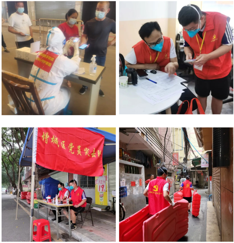 在海珠區(qū)官洲街道赤沙村,突擊隊(duì)員們主動(dòng)擔(dān)當(dāng)作為,協(xié)助查驗(yàn)核酸碼、測量體溫、維護(hù)秩序、校對(duì)補(bǔ)錄名單,搬卸物資、派送生活用品,篩查紅黃碼人員、網(wǎng)格圍蔽巡查等工作,歷經(jīng)種種困難,始終堅(jiān)守戰(zhàn)“疫”一線。