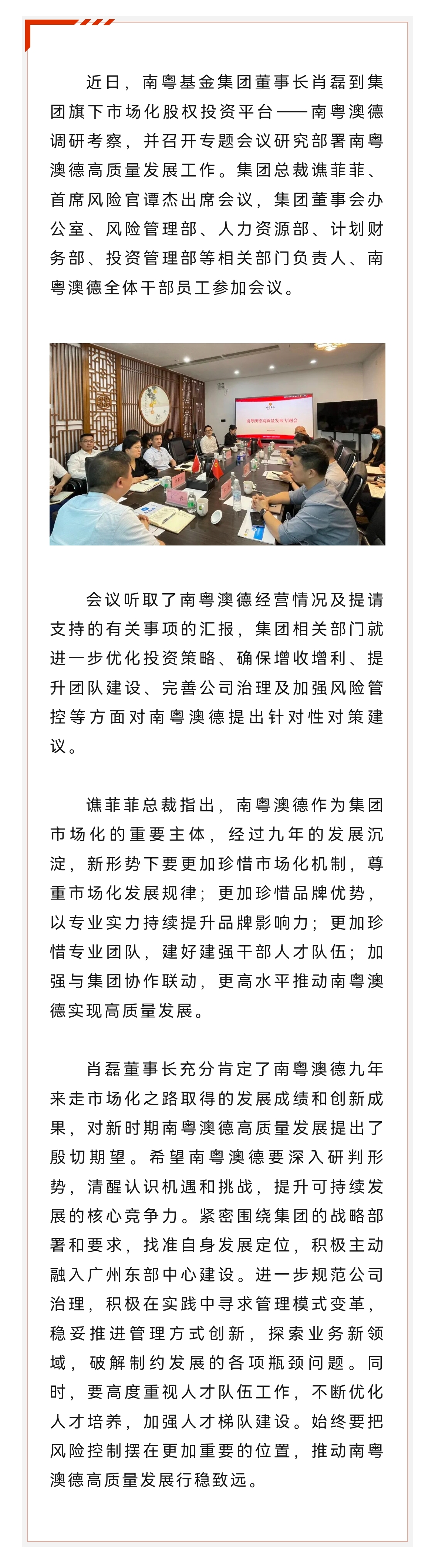 集團(tuán)主要領(lǐng)導(dǎo)調(diào)研南粵澳德并召開高質(zhì)量發(fā)展專題會(huì)議