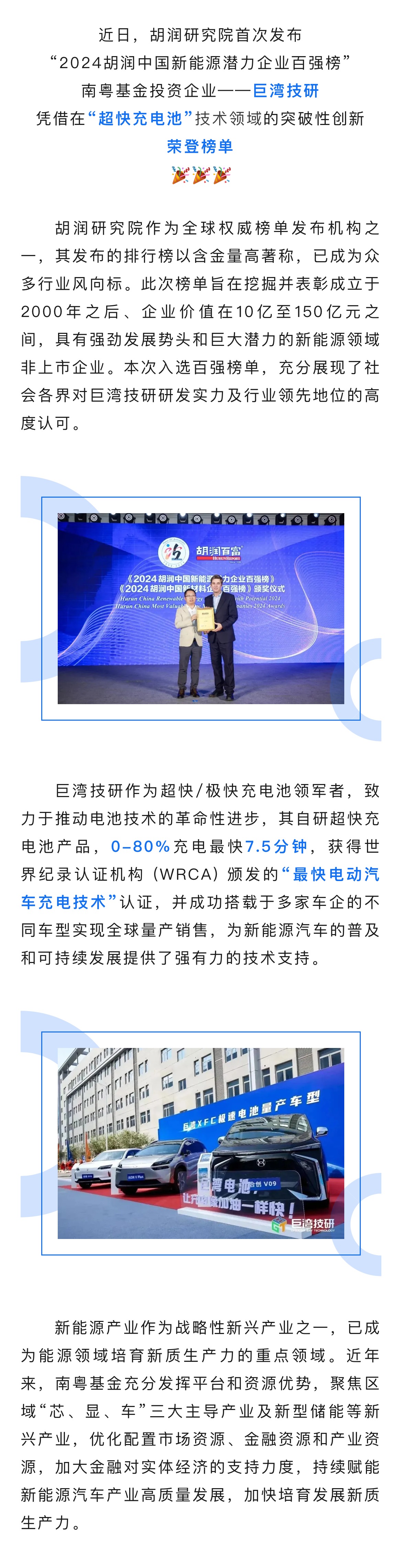 巨灣技研!南粵基金投資企業(yè)榮登胡潤百強(qiáng)榜