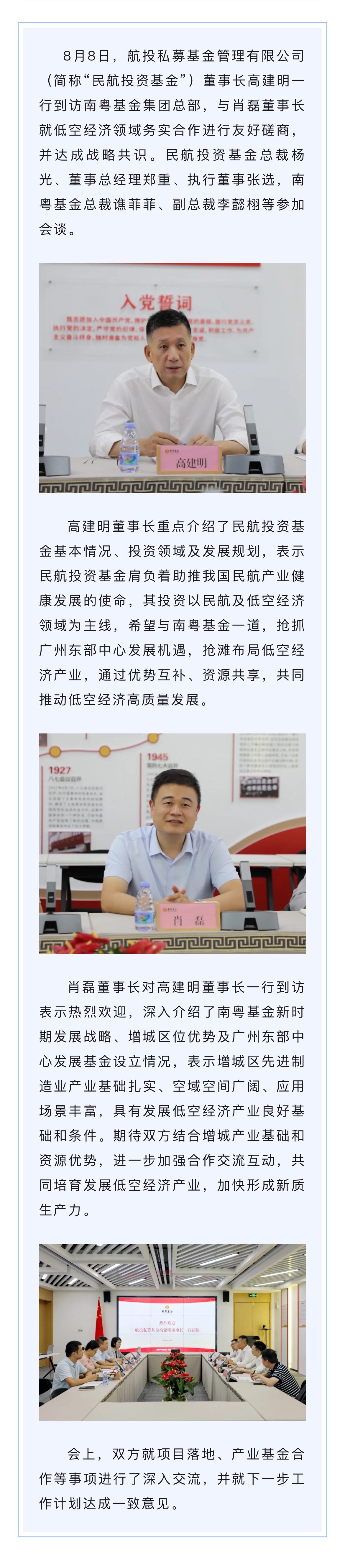 民航投資基金董事長高建明再訪南粵基金集團