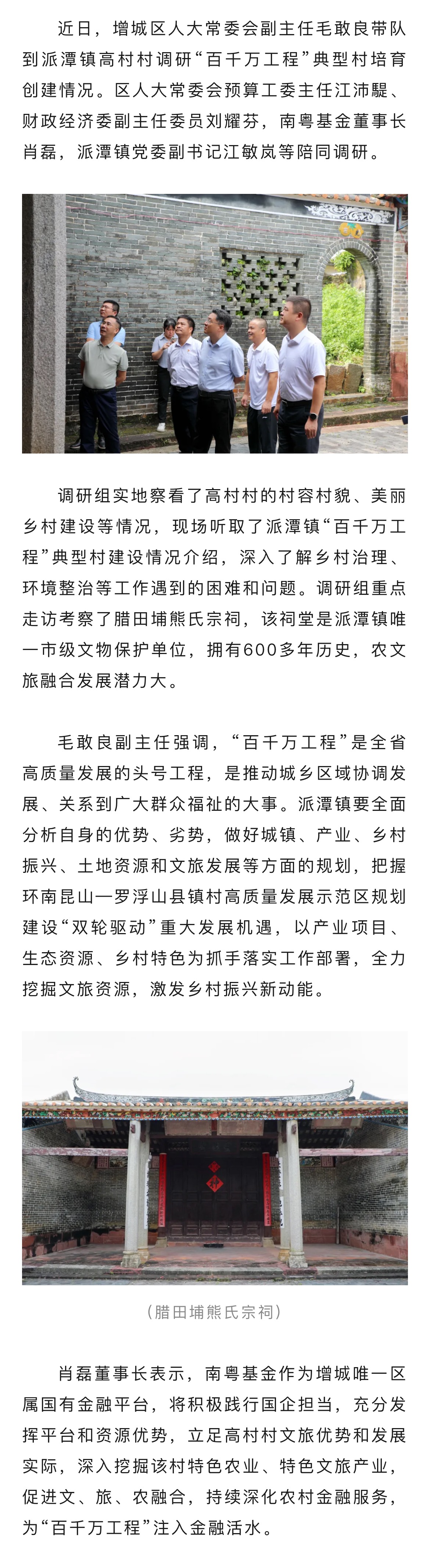 增城區(qū)人大常委會(huì)副主任毛敢良帶隊(duì)南粵基金開(kāi)展“百千萬(wàn)工程”典型村調(diào)研