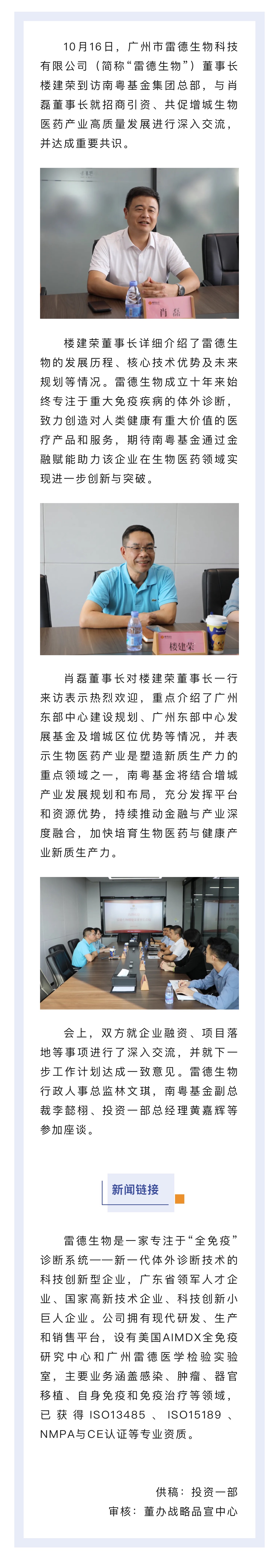 雷德生物董事長(zhǎng)樓建榮到訪(fǎng)南粵基金集團(tuán)