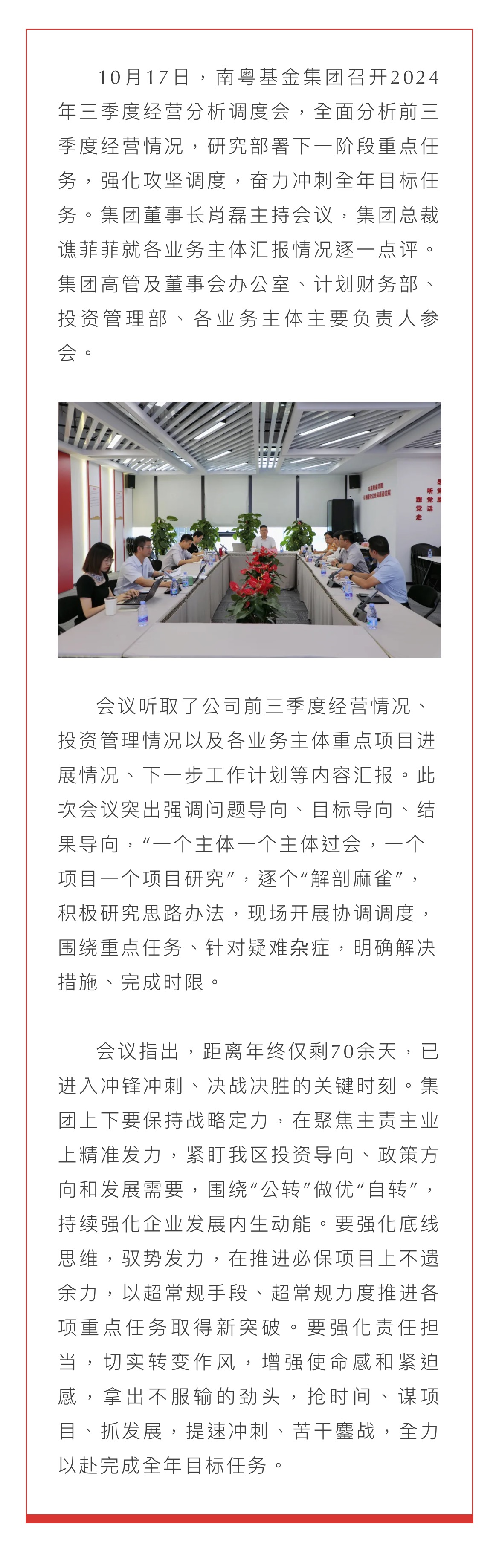 強(qiáng)化底線思維 奮力沖刺攻堅(jiān)——南粵基金集團(tuán)召開2024年三季度經(jīng)營(yíng)分析調(diào)度會(huì)