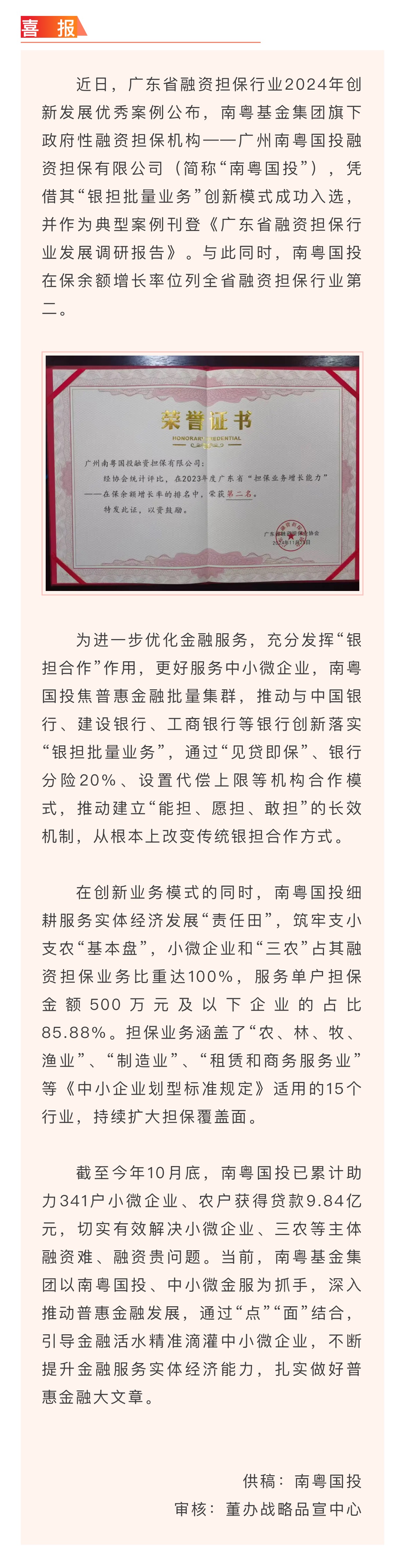 南粵樣本!南粵國投入選全省融資擔(dān)保行業(yè)創(chuàng)新發(fā)展優(yōu)秀案例