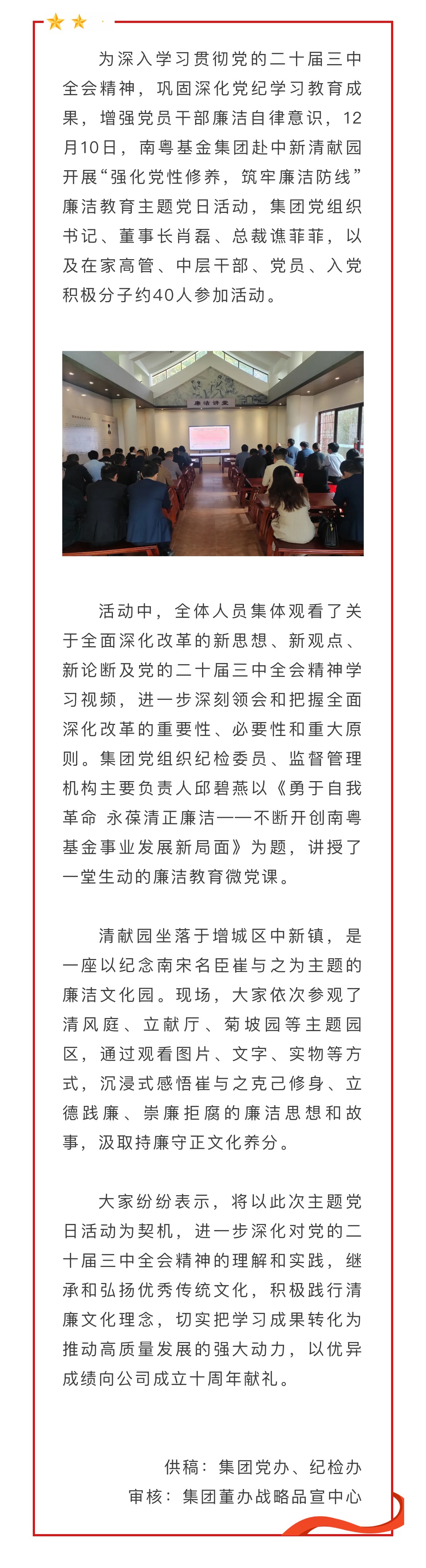 南粵基金集團(tuán)赴清獻(xiàn)園開展廉潔教育主題黨日活動(dòng)