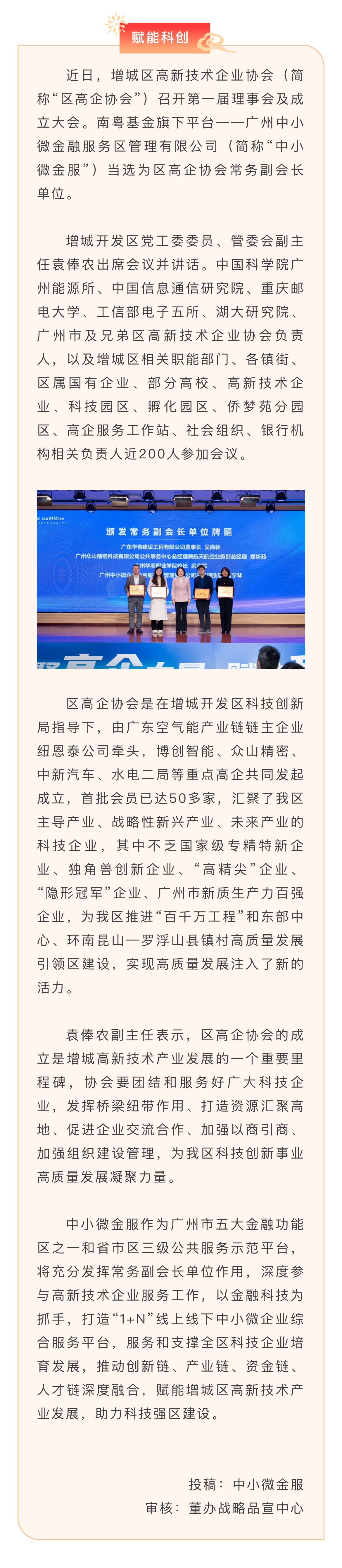 賦能科創(chuàng) 南粵基金旗下平臺當(dāng)選區(qū)高企協(xié)會常務(wù)副會長單位