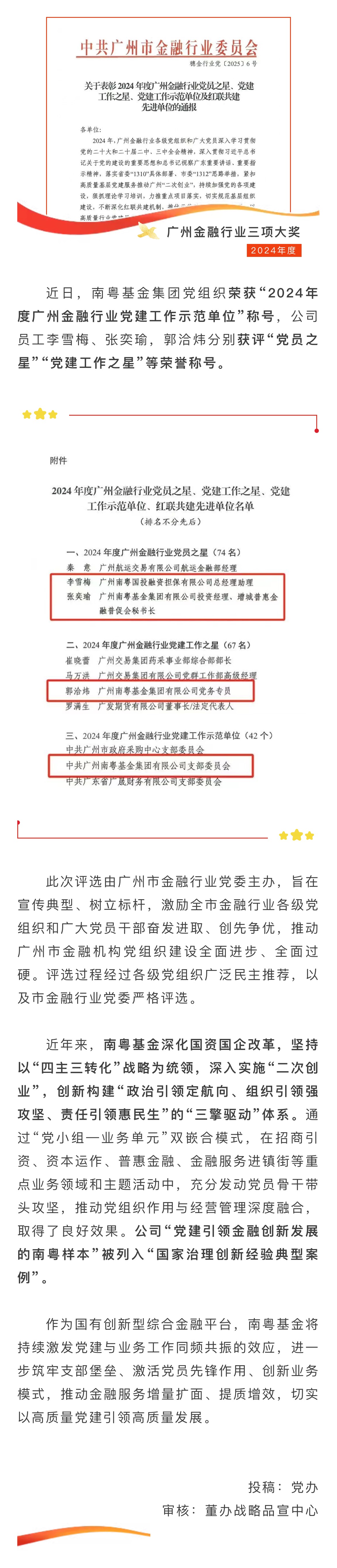 黨業(yè)融合結(jié)碩果!南粵基金獲評“廣州金融行業(yè)黨建工作示范單位”
