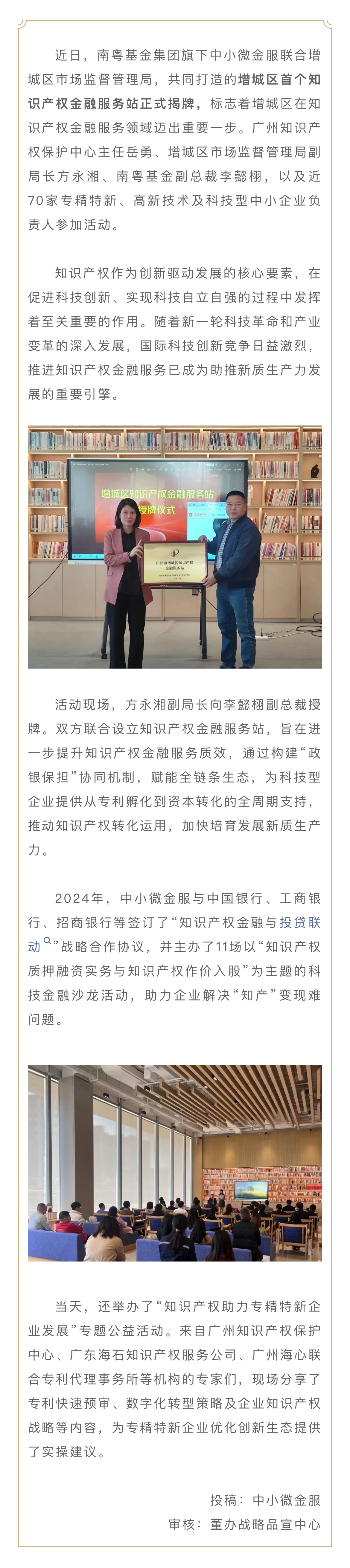 點“知”成金!南粵基金聯(lián)合打造增城區(qū)首個知識產權金融服務站