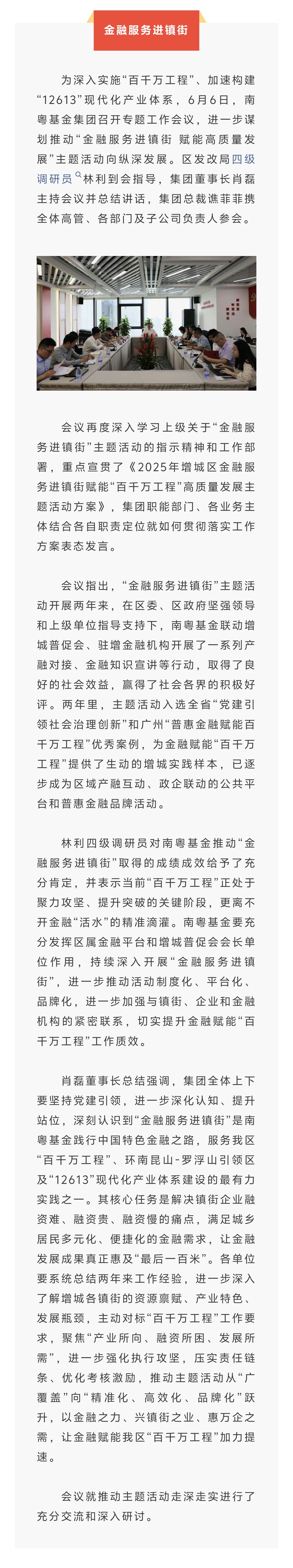 深入用力 扎實(shí)推進(jìn) 久久為功——南粵基金集團(tuán)召開(kāi)“金融服務(wù)進(jìn)鎮(zhèn)街”專(zhuān)題工作會(huì)