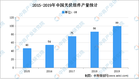光伏是太陽能光伏發(fā)電系統(tǒng)的簡稱,是一種利用太陽電池半導(dǎo)體材料的光伏效應(yīng),將太陽光輻射能直接轉(zhuǎn)換為電能的一種新型發(fā)電系統(tǒng),有獨立運行和并網(wǎng)運行兩種方式。光伏組件是太陽能發(fā)電系統(tǒng)中的核心部分,也是太陽能發(fā)電系統(tǒng)中最重要的部分。數(shù)據(jù)顯示,2019年我國光伏組件產(chǎn)量為98.6GW,同比增長17%。
