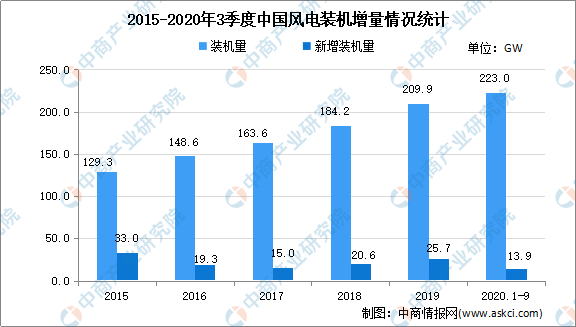 隨著世界各國對能源安全、生態(tài)環(huán)境、氣候變化等問題的日益重視,加快發(fā)展風(fēng)電產(chǎn)業(yè)已成為國際社會推動能源轉(zhuǎn)型發(fā)展、應(yīng)對全球氣候變化的普遍共識和一致行動。近年來,我國風(fēng)電裝機規(guī)模穩(wěn)步擴大。數(shù)據(jù)顯示,2020年前三季度我國風(fēng)電裝機2.23億千瓦,其中陸上風(fēng)電累計裝機2.16億千瓦、海上風(fēng)電累計裝機750萬千瓦。2020年前三季度,全國風(fēng)電發(fā)電量3317億千瓦時,同比增長13.8%。