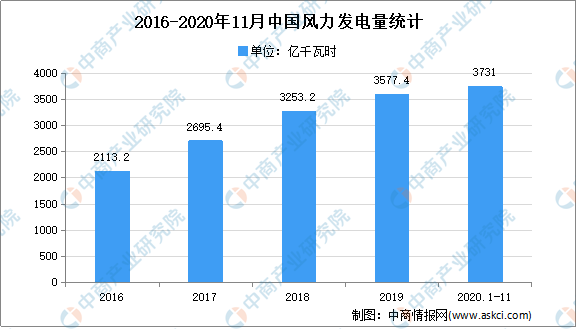 風(fēng)力發(fā)電是指把風(fēng)的動能轉(zhuǎn)為電能,是一種清潔無公害的的可再生能源。數(shù)據(jù)顯示,2019年我國風(fēng)力發(fā)電量達(dá)3577.4億千瓦時。風(fēng)力發(fā)電持續(xù)增長,2020年1-11月風(fēng)力發(fā)電量為3731億千瓦時,同比增長10.7%。
