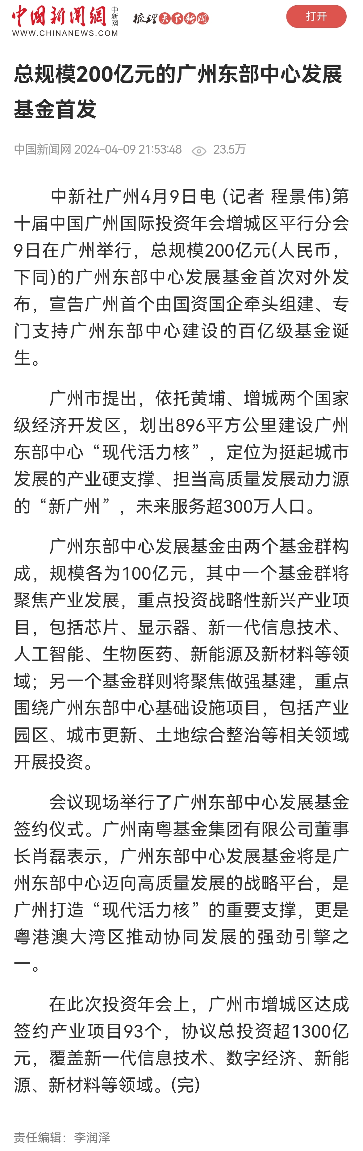中國新聞網(wǎng) | 總規(guī)模200億元的廣州東部中心發(fā)展基金首發(fā)