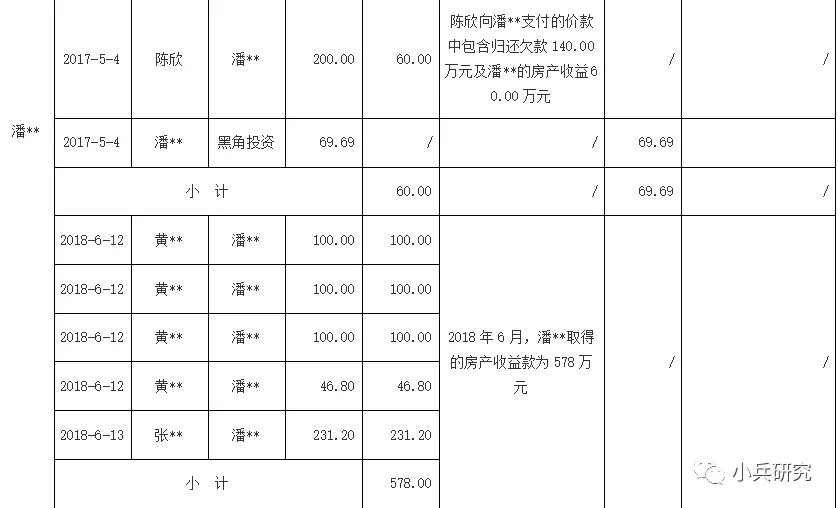 從新老實控人股權(quán)交易的情況來看,通常認(rèn)為的銀行流向應(yīng)該是從潘**轉(zhuǎn)向黃**和張**。但從結(jié)果來看,潘**少有資金轉(zhuǎn)出,發(fā)行人解釋為:潘**團隊在黃**前期的房地產(chǎn)項目開發(fā)過程中承擔(dān)外部顧問,且黃**與潘**團隊口頭約定以房地產(chǎn)項目銷售總收入的千分之四作為確定分享房產(chǎn)收益支付給潘**團隊,黃**將實際未支付給潘**的房產(chǎn)收益抵消了股權(quán)轉(zhuǎn)讓款以及用此房產(chǎn)收益代潘**支付給其他股權(quán)出讓方。