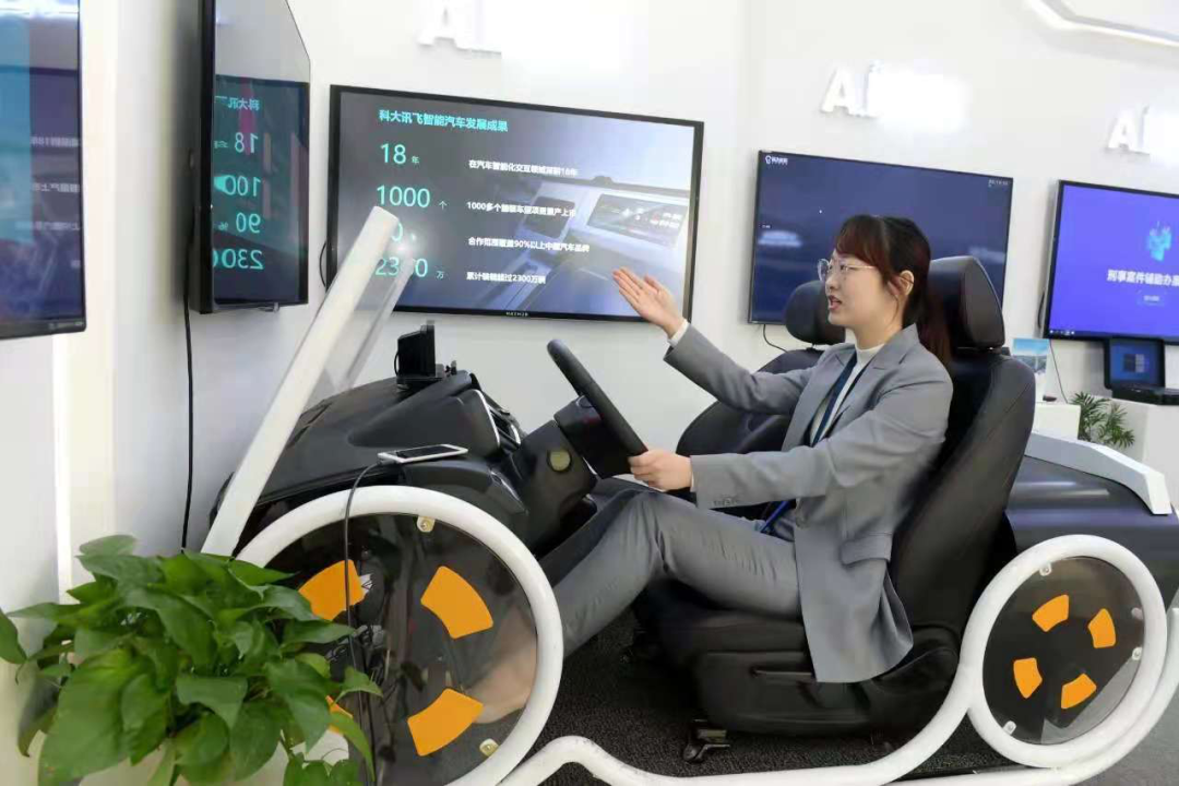 工作人員演示科大訊飛車載領(lǐng)域智能語音解決方案系統(tǒng)