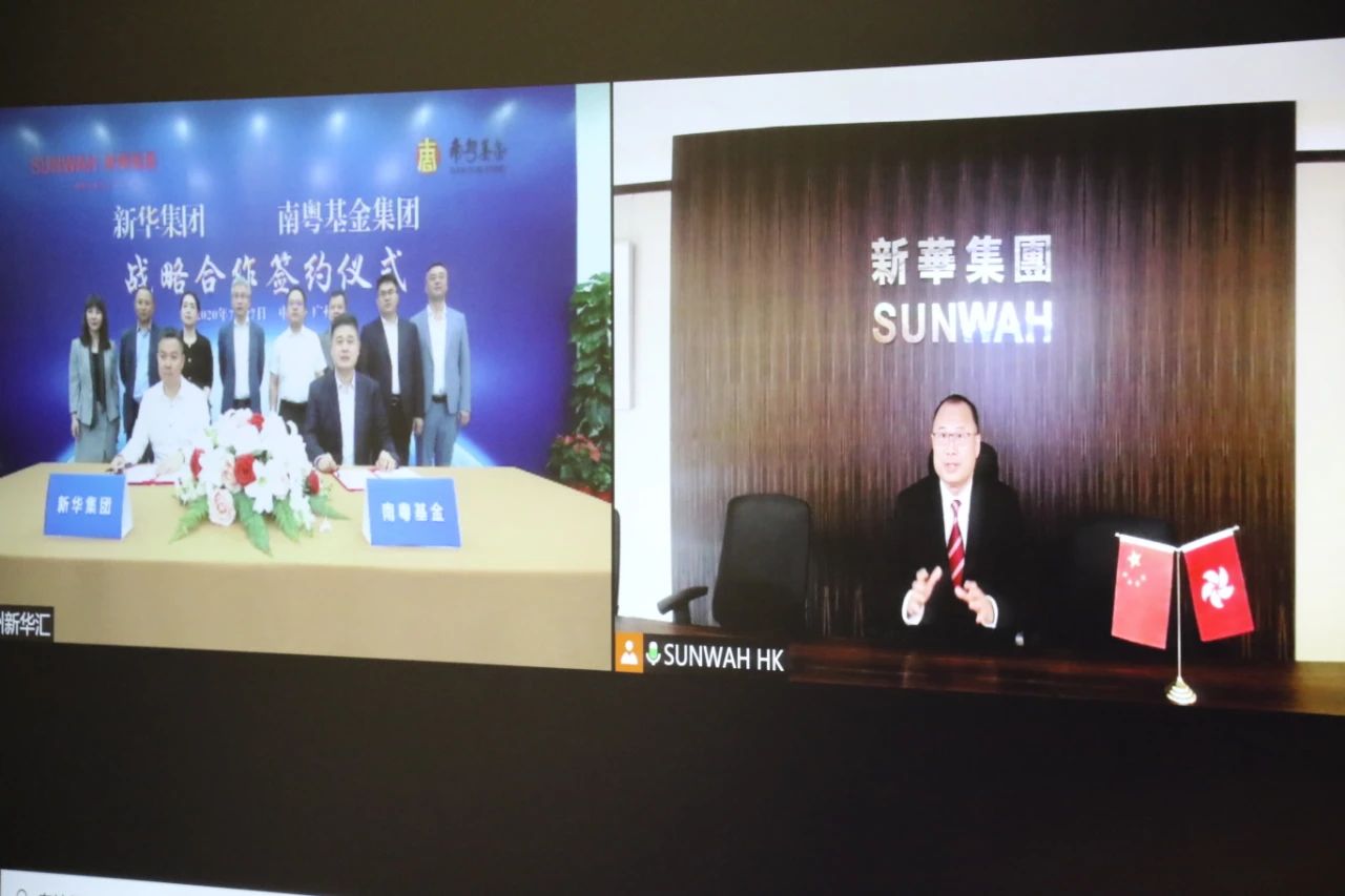 7月27日,廣州南粵基金集團(tuán)有限公司(簡稱“南粵基金”)與香港新華集團(tuán)(簡稱“新華集團(tuán)”)在廣州簽署戰(zhàn)略合作協(xié)議。全國政協(xié)常委、香港中華總商會會長、新華集團(tuán)主席蔡冠深視頻出席簽約儀式,并與南粵基金董事長林濤一行就推進(jìn)“一帶一路”業(yè)務(wù)拓展、粵港澳大灣區(qū)建設(shè)等全方位多領(lǐng)域合作進(jìn)行了深入交流。新華集團(tuán)主席助理張曉峰、華南區(qū)總經(jīng)理方玲、川渝大區(qū)總裁吳發(fā)強(qiáng),南粵基金副總裁肖磊等參加簽約活動。