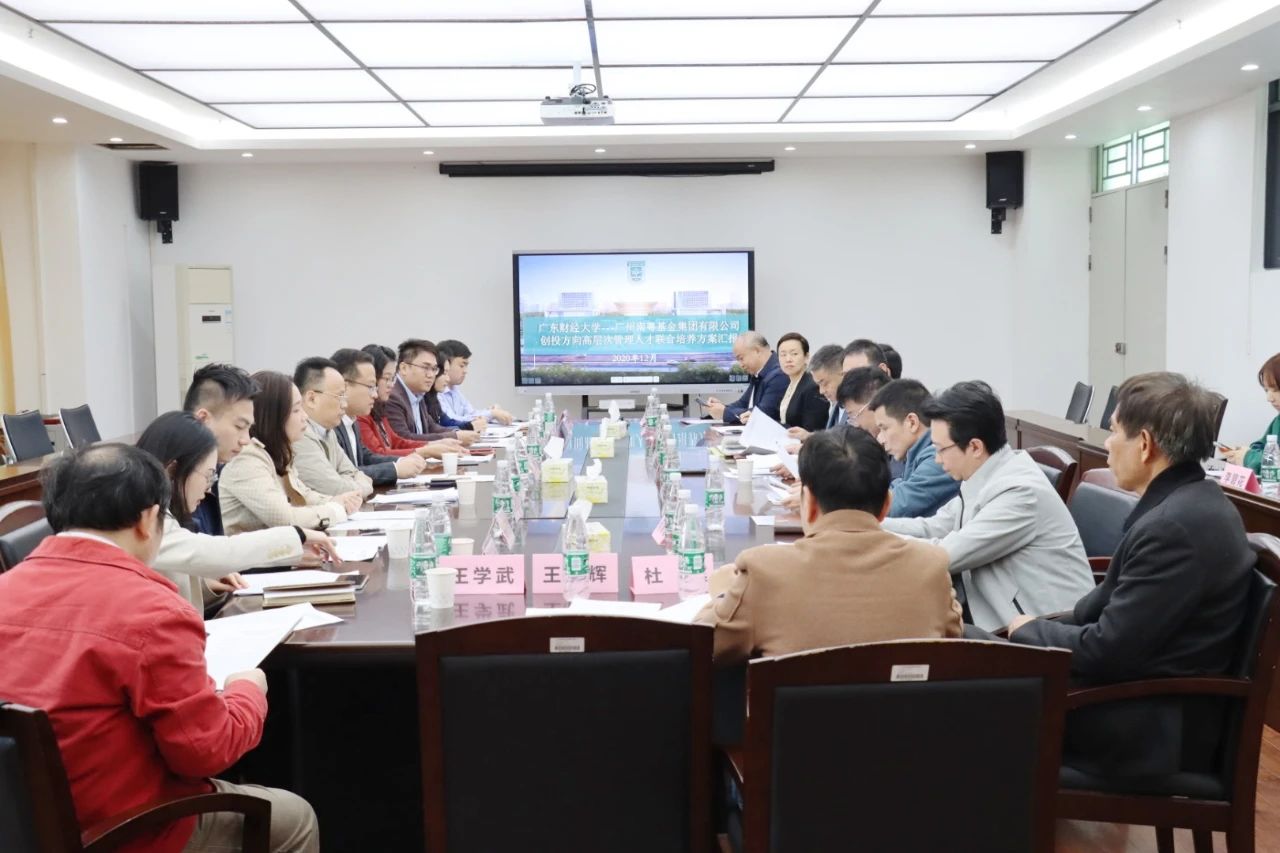 南粵基金副總裁譙菲菲、蔣劍鋒,廣財(cái)研究生院院長蘇武俊、發(fā)規(guī)處處長李俊、招生就業(yè)處處長何雄衛(wèi)、金融學(xué)院院長段軍山、MBA學(xué)院院長李煥榮等參加會談。
