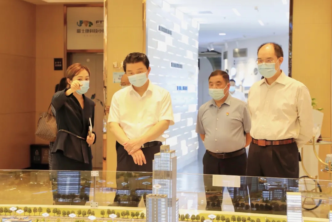 曾金賢總裁(右一)陪同廖良輝書(shū)記(左二)現(xiàn)場(chǎng)考察