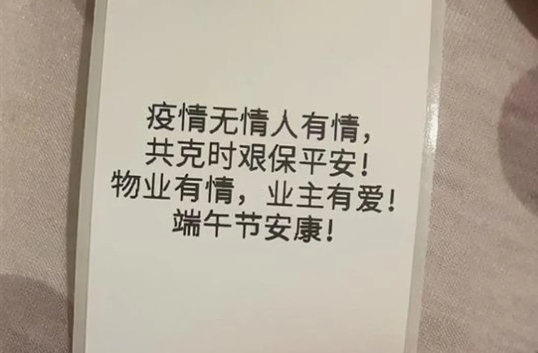 為了保證食品安全,劉燕特地采購了密封袋、封口機(jī)器、標(biāo)簽打印機(jī),做了暖心的包裝?!棒兆语h香贈(zèng)鄰里,居家過節(jié)倍溫馨,守望相助共防疫,業(yè)管一家齊歡慶”“物業(yè)有情,業(yè)主有愛!端午節(jié)安康!”簡簡單單的標(biāo)簽上是質(zhì)樸的鼓勵(lì)和祝福。疫情之下,“端午安康”這句祝福更顯真切。