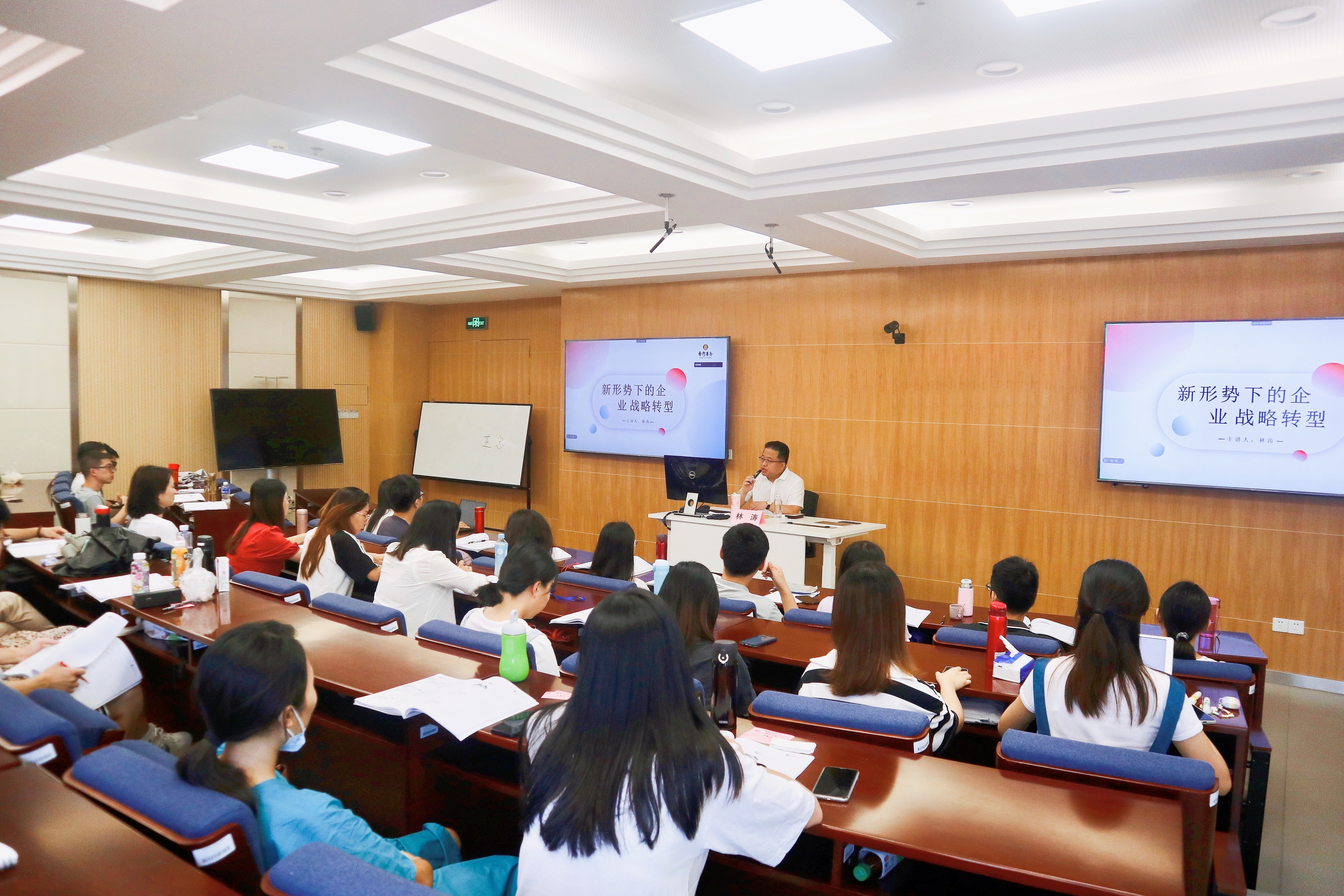 在“十四五”開局和“兩個一百年”奮斗目標的歷史交匯期,中國企業(yè)正面臨著復雜多變的形勢,亟需挖掘新動能與新的增長極,科學把握新發(fā)展階段,堅定貫徹新發(fā)展理念,積極構(gòu)建“以國內(nèi)大循環(huán)為主體、國內(nèi)國際雙循環(huán)相互促進”的新發(fā)展格局。授課中,林濤董事長以“新形勢下的企業(yè)戰(zhàn)略轉(zhuǎn)型”為主題,采用理論研究與案例分析相結(jié)合的方式,重點梳理解讀了國家宏觀經(jīng)濟形勢及產(chǎn)業(yè)發(fā)展戰(zhàn)略、“十四五”規(guī)劃綱要,分享了對中國企業(yè)改革發(fā)展趨勢的解析和判斷。