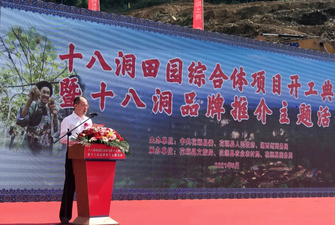 9月25日,精準(zhǔn)扶貧首倡之地——湘西州花垣縣十八洞田園綜合體項(xiàng)目開工典禮暨十八洞品牌推介主題活動順利舉行。湘西州委書記虢正貴出席儀式并宣布項(xiàng)目開工和活動開幕,州委副書記、花垣縣委書記廖良輝致辭,州委常委楊彥芳,州委秘書長、辦公室主任向邦偉及州委宣傳部、文旅廣電局、商務(wù)局、住建局、自然資源局、教體局等單位負(fù)責(zé)人出席,南粵基金總裁曾金賢代表業(yè)主單位致辭并見證簽約活動,花垣縣委副書記、縣長隆立新主持儀式,縣委副書記周勝益作十八洞田園綜合體項(xiàng)目介紹及十八洞系列品牌推介。