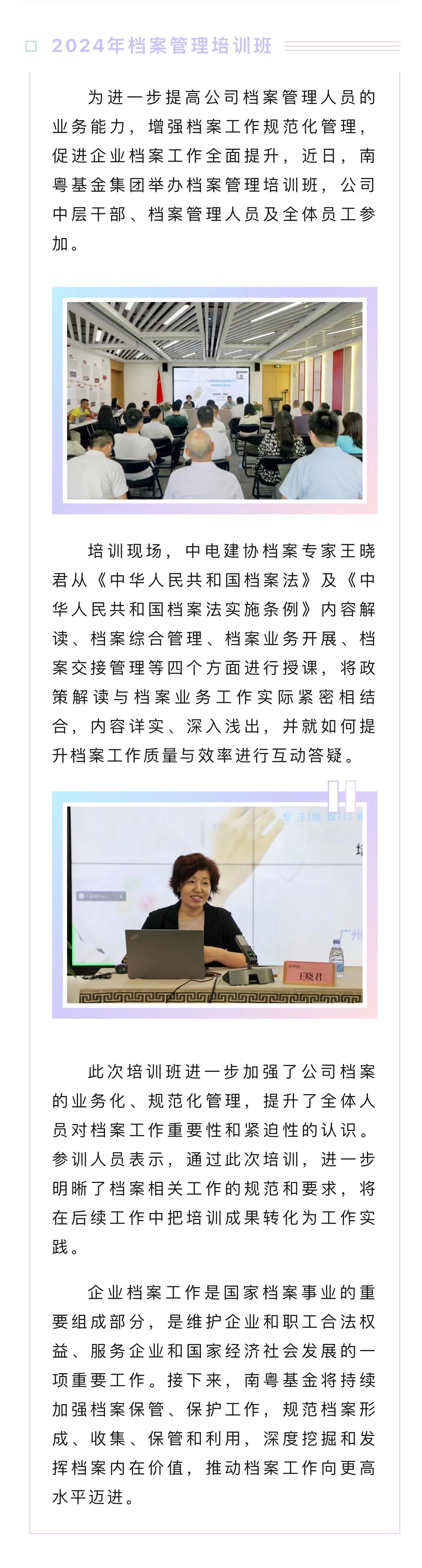 南粵基金集團(tuán)舉辦2024年檔案管理培訓(xùn)班