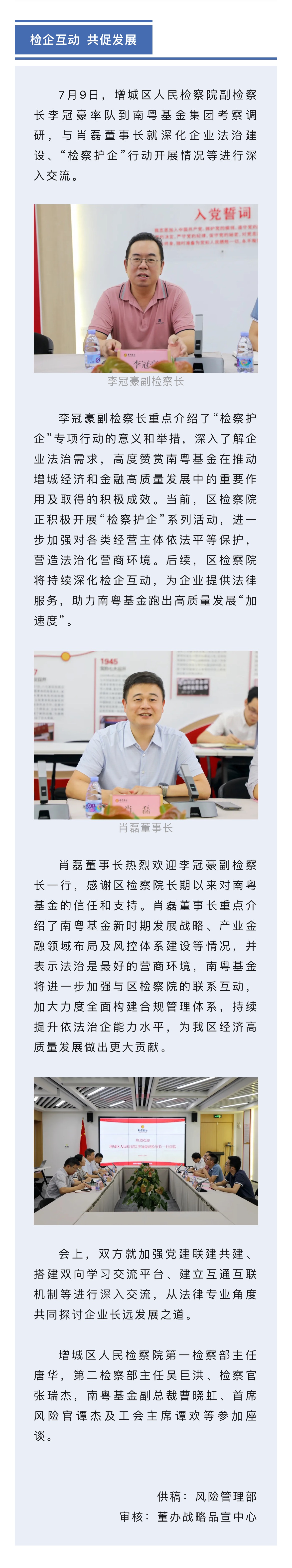 檢企互動 共促發(fā)展——增城區(qū)人民檢察院到南粵基金集團考察調研