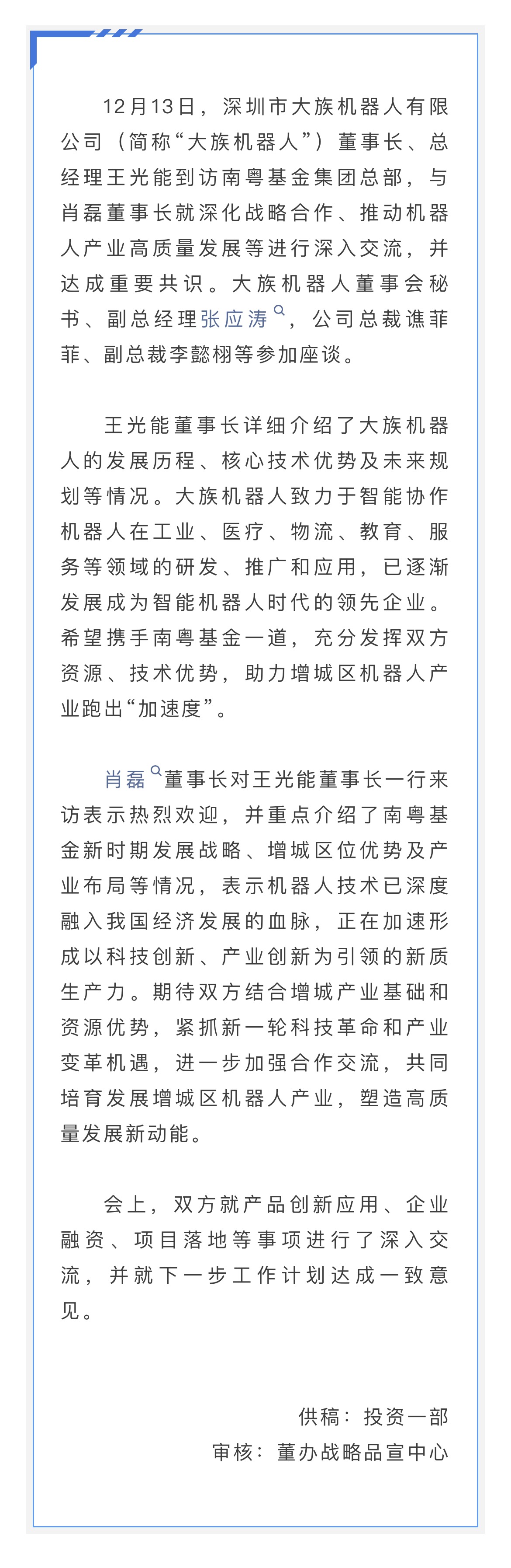 大族機(jī)器人董事長(zhǎng)王光能到訪南粵基金集團(tuán)