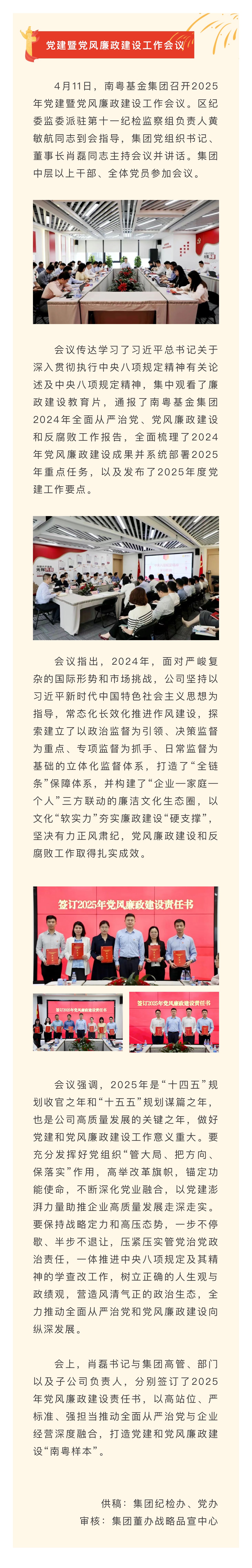 南粵基金集團召開2025年黨建暨黨風廉政建設(shè)工作會議