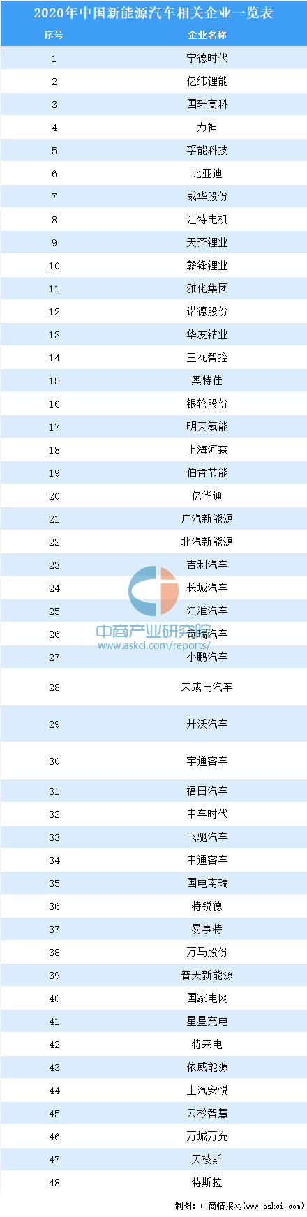 2020年中國新能源汽車相關(guān)企業(yè)一覽表
