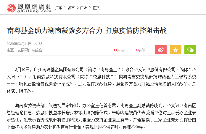 鳳凰新聞|南粵基金助力湖南凝聚多方合力 打贏疫情防控阻擊戰(zhàn)