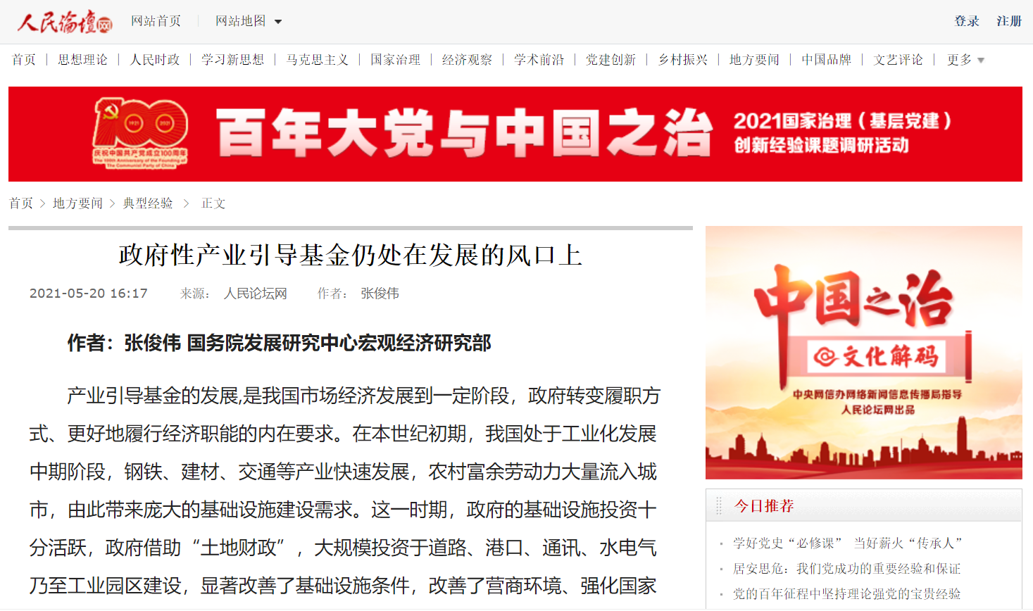 人民論壇網(wǎng) | 政府性產(chǎn)業(yè)引導(dǎo)基金仍處在發(fā)展的風(fēng)口上
