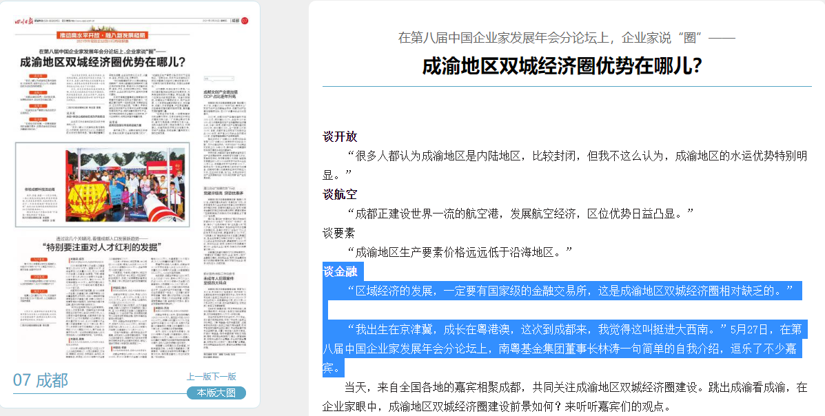 在第八屆中國企業(yè)家發(fā)展年會分論壇上,企業(yè)家說“圈”——成渝地區(qū)雙城經濟圈優(yōu)勢在哪兒?