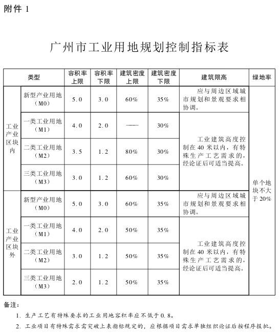 附件:1.廣州市工業(yè)用地規(guī)劃控制指標表