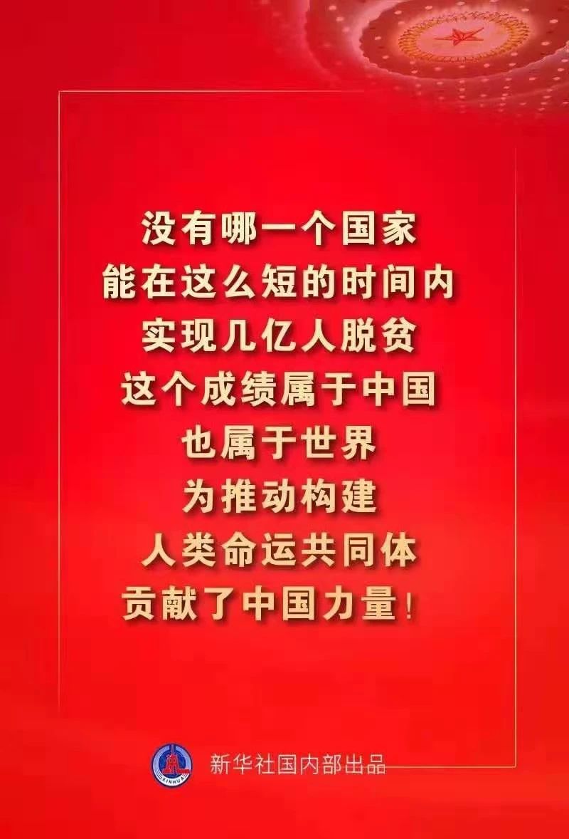 回首過去,我們?cè)诮鉀Q困擾中華民族幾千年的絕對(duì)貧困問題上取得了偉大歷史性成就,創(chuàng)造了人類減貧史上的奇跡。展望未來,我們正在為全面建設(shè)社會(huì)主義現(xiàn)代化國家的歷史宏愿而奮斗。征途漫漫,惟有奮斗。全黨全國各族人民要更加緊密地團(tuán)結(jié)在黨中央周圍,堅(jiān)定信心決心,以永不懈怠的精神狀態(tài)、一往無前的奮斗姿態(tài),真抓實(shí)干、埋頭苦干,向著實(shí)現(xiàn)第二個(gè)百年奮斗目標(biāo)奮勇前進(jìn)!